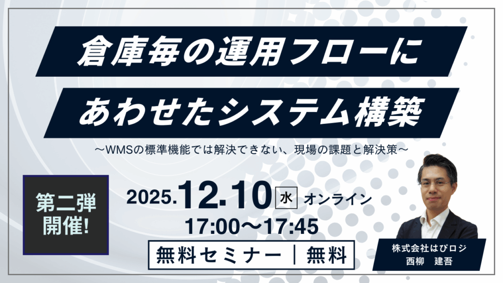 12/10開催|第2弾!倉庫毎の運用フローにあわせたシステム構築 ~WMSの標準機能では解決できない、現場の課題と解決策~